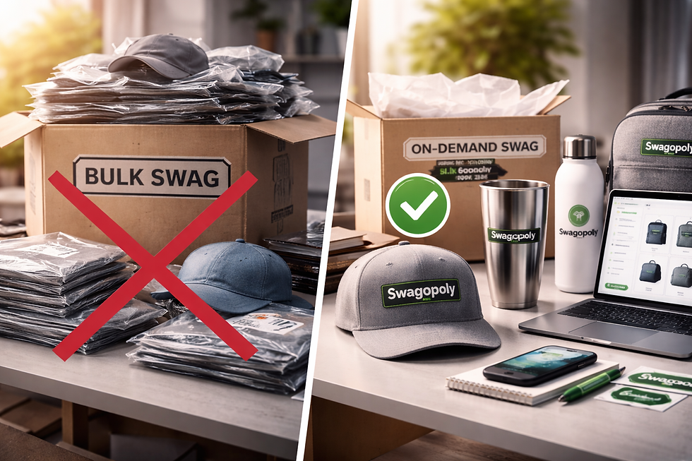 At Swagopoly, we’ve worked with businesses that started with bulk ordering and quickly outgrew it. The shift we’re seeing is clear: companies are moving away from stockpiling products and toward on-demand, system-driven swag programs that are built for flexibility and growth.